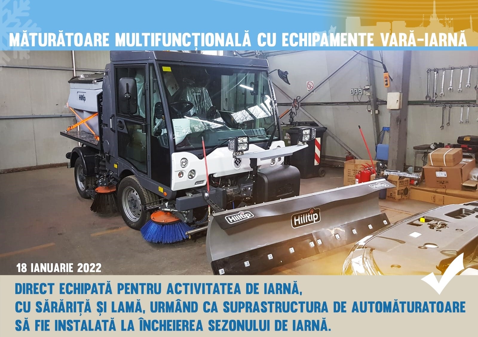 Primăria municipiului a finalizat achiziția a două utilaje multifuncționale, utilizabile în orice anotimp, pentru activități de deszăpezire, împrăstiat material antiderapant, măturat mecanizat, spălat carosabil, udat zone verzi sau transport materiale.