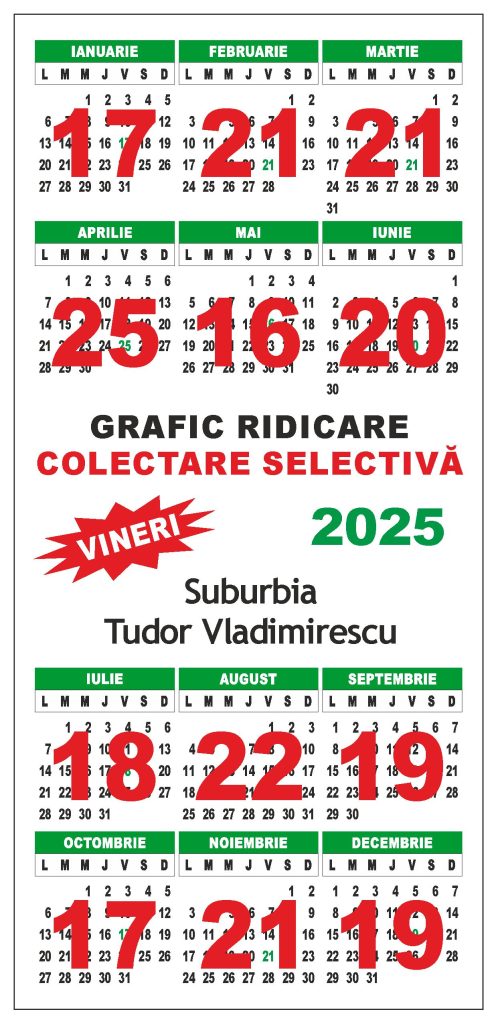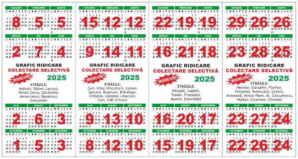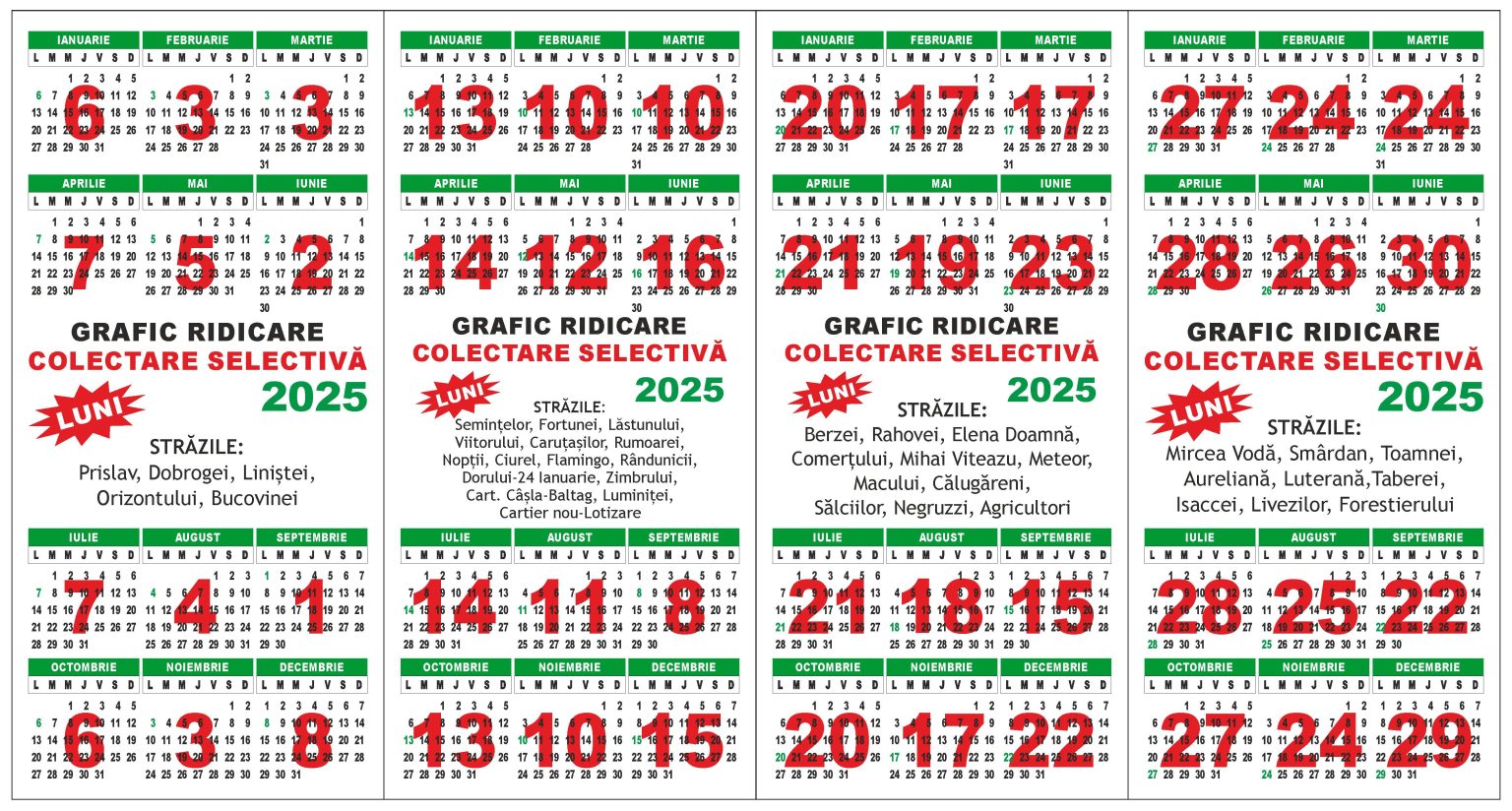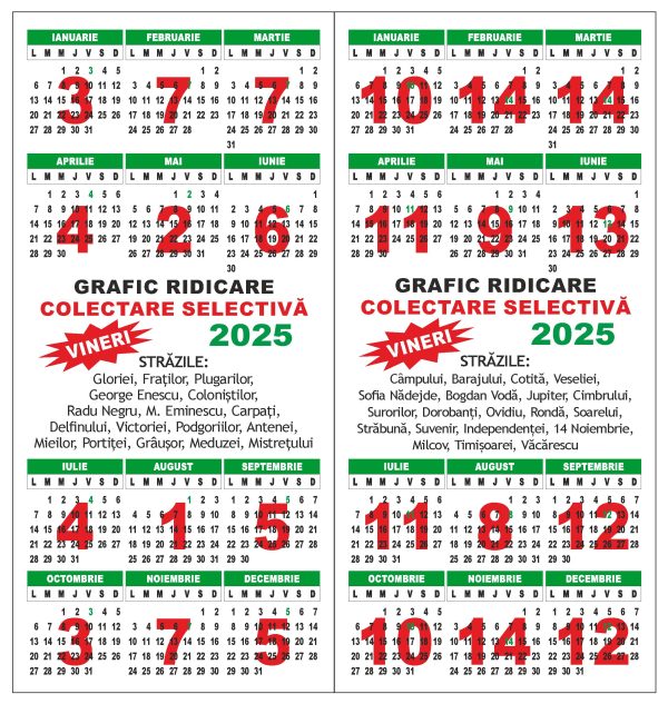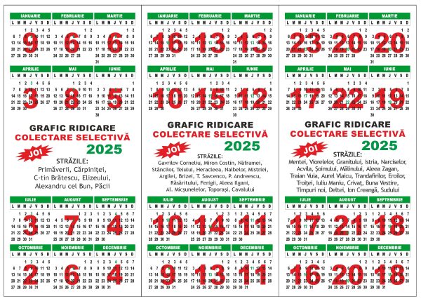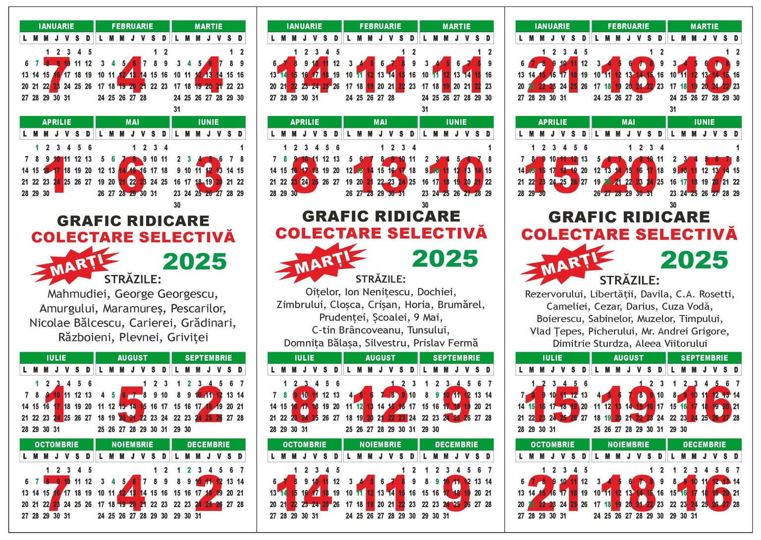 𝗚𝗥𝗔𝗙𝗜𝗖𝗨𝗟 𝗖𝗢𝗟𝗘𝗖𝗧𝗔̆𝗥𝗜𝗜 𝗦𝗘𝗟𝗘𝗖𝗧𝗜𝗩𝗘 pe anul 2025 este disponibil pe pagina noastră web, accesând linkul: https://serviciipublicetulcea.ro/colectare-selectiva/