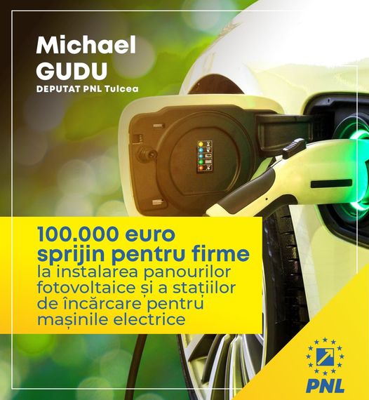 declarați eligibili vor primi finanțare pentru instalarea de sisteme de panouri fotovoltaice pentru producerea de energie electrică cu o putere instalată cuprinsă între 27 kWp – 100 kWp, precum și a stațiilor de reîncărcare de minim 22 kW pentru vehicule electrice și electrice hibrid plug – in”.Michael Gudu, deputat