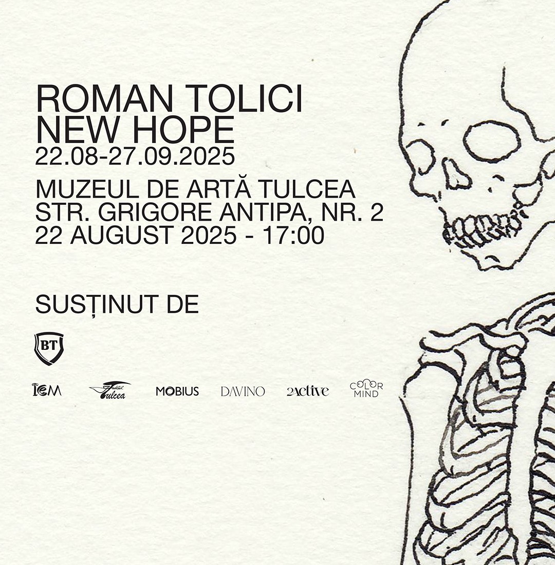 Mobius Gallery și Muzeul de Artă din cadrul Institutului de Cercetări Eco-muzeale „Gavrilă Simion” Tulcea anunță deschiderea NEW HOPE, cea mai recentă expoziție semnată de Roman Tolici, unul dintre cei mai apreciați pictori contemporani din România. Evenimentul marchează ultima oprire a parcursului itinerant al expoziției prin cinci orașe din România, după Brașov, Timișoara, București și Sibiu.
