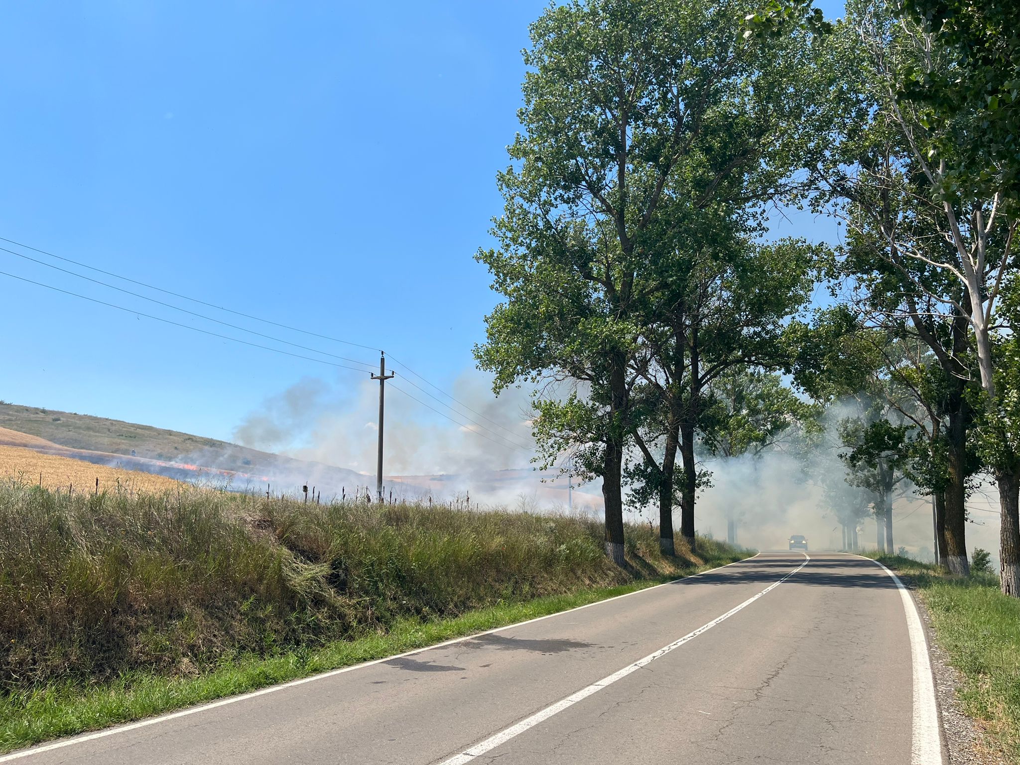 Atenție șoferi pe drumul județean 222C, către Malcoci! Circulația pe acel sector de drum este îngreunată astăzi, la prânz, din cauza fumului gros după ce un incendiu de vegetație a izbucnit și s-a extins la o cultură de grâu.
