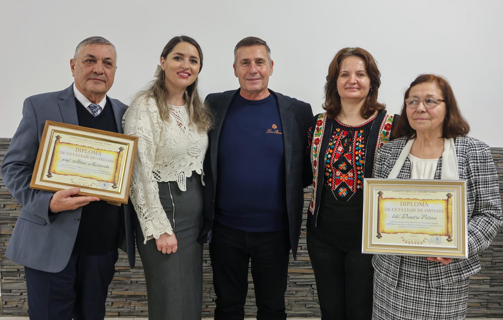 Titlurile au fost acordate în baza hotărârilor adoptate de Consiliul Local al comunei Cerna în ședința din 25 noiembrie a.c., iar festivitatea oficială s-a desfășurat la Sala de festivități a Primăriei, în prezența autorităților locale, a invitaților și a numeroși membri ai comunității.