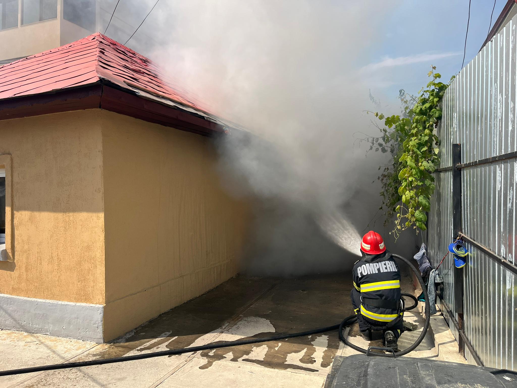 Update. Ora 12,52. Incendiul a fost lichidat în limitele găsite. Au fost afectați aproximativ 10 mp din acoperișul locuinței, o bucătărie exterioară de aproximativ 10 mp. Cauza probabilă a incendiului a fost jocul copiilor cu focul.