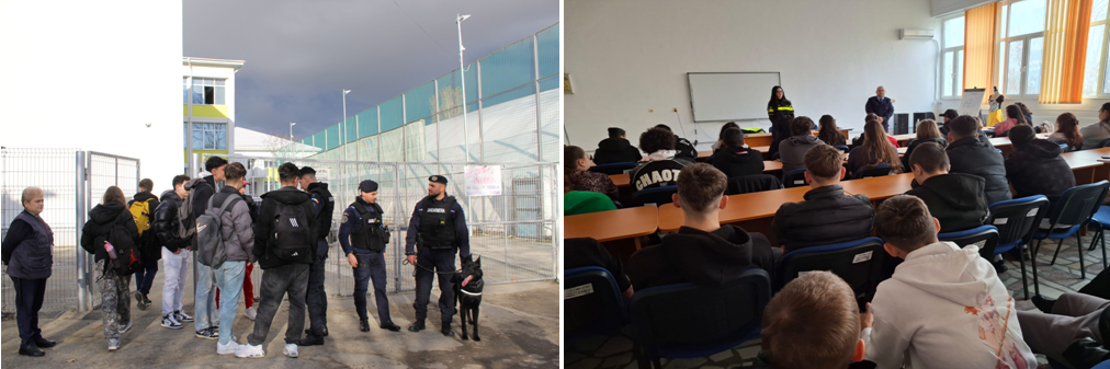 Totodată, în municipiu, forțe ale IPJ și IJJ, sprijinite de o echipă canină, au acționat în incinta și în proximitatea a două unități de învățământ liceelor Grigore Moisil și Ion Mincu, desfășurând activități preventive la care au participat peste 200 de elevi și cadre didactice. Temele abordate au vizat siguranța școlară, prevenirea consumului de substanțe, combaterea violenței și a bullyingului, precum și reducerea absenteismului.