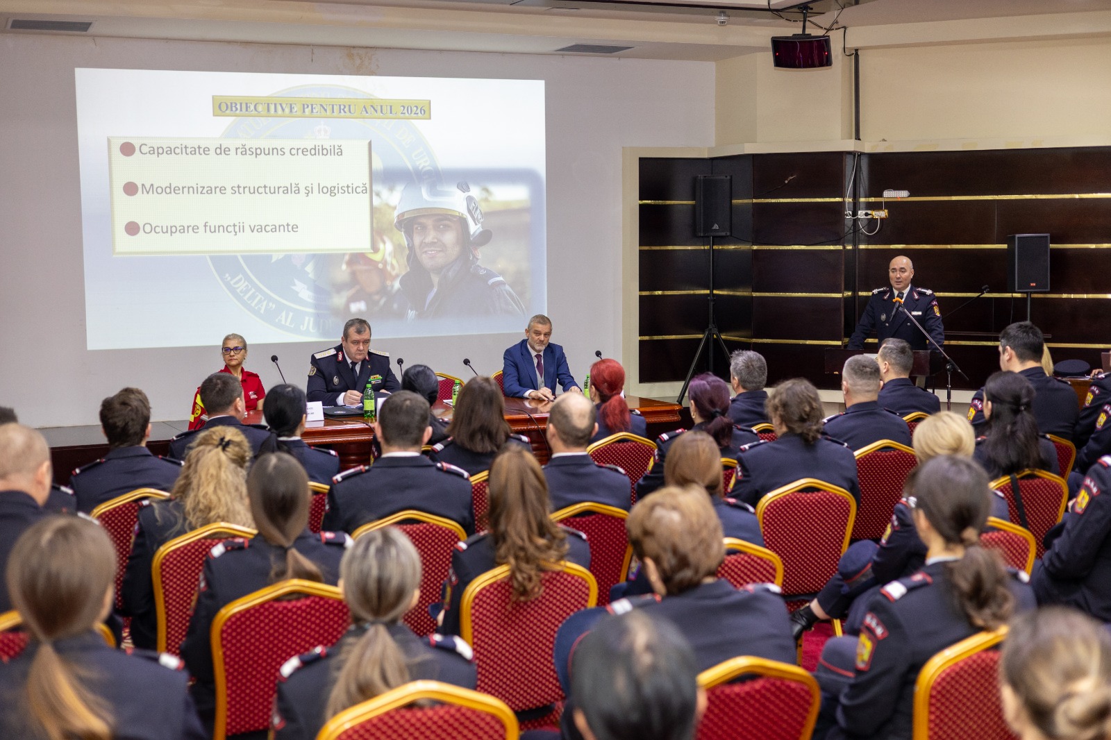 Astăzi, la hotelul Delta din Tulcea, a avut loc prezentarea bilanțului activității desfășurate de Inspectoratul pentru Situații de Urgență „Delta” al județului Tulcea în anul 2025. Evenimentul s-a desfășurat într-un cadru oficial, în prezența adjunctului inspectorului general al IGSU, gl.-lt. Benone-Gabriel Duduc, a prefectului județului Tulcea, Alexandru Dan Munteanu, precum și a asistentei-șefe UPU-SMURD Tulcea, Monica Trifan Lefter.