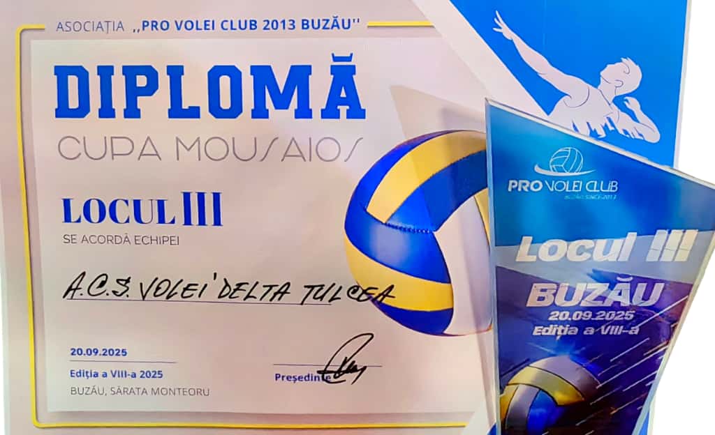 Echipa de volei old boys A.C.S. Volei Delta Tulcea a reușit să obțină un rezultat important la cea de-a VIII-a ediție a Cupei Mousaios, desfășurată în acest weekend la Sărata Monteoru, județul Buzău. Tulcenii s-au clasat pe locul al III-lea, după meciuri disputate și un nivel ridicat de competiție, confirmând încă o dată pasiunea și dăruirea pentru volei, chiar și dincolo de vârsta performanței de juniorat.