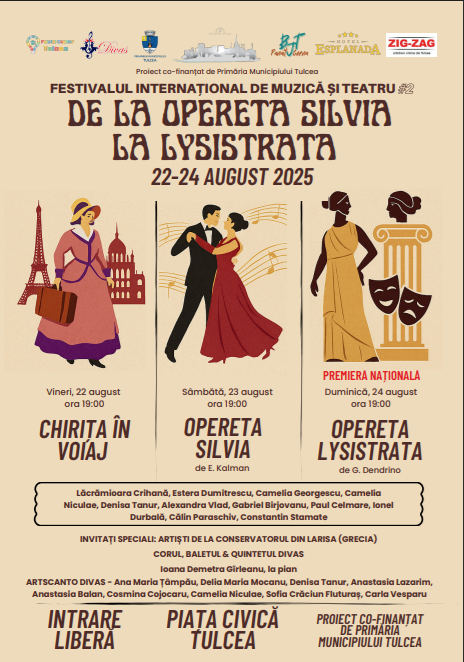 Tulcea se pregătește să devină, în perioada 22–24 august, capitala muzicii și a teatrului, prin cea de-a doua ediție a Festivalului Internațional de Muzică și Teatru, desfășurat sub genericul sugestiv „De la opereta Silvia la Lysistrata”. Evenimentul va anima scena din Piața Civică și va aduce publicului tulcean o experiență culturală de excepție.